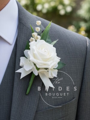 Pocket Square Flowers – Grooms Pocket Boutonniere – Any Colour Rose With Lily Of The Valley & Forget Me Nots