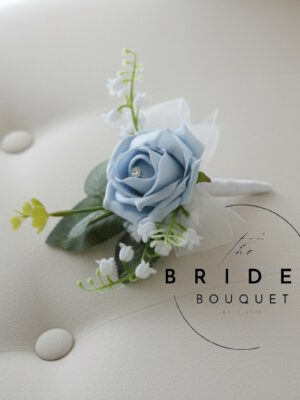 Pocket Square Flowers – Grooms Pocket Boutonniere – Any Colour Rose With Lily Of The Valley & Forget Me Nots