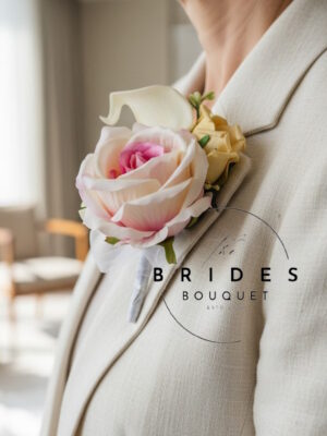 Silk Rose & Foliage Wedding Buttonholes – Choose Rose & Ribbon Colours – Guest Buttonhole
