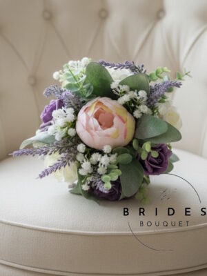 Wedding Bouquets – Silk Peony, Heather, Lambs Ear & Artificial Roses – Bridesmaid Bouquet