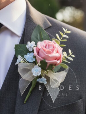Wedding Buttonholes – Forget Me Not & Rose – Choose Rose Shade