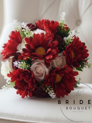 Artificial Wedding Flower Bouquets – Any Colour Rose With Gerbera Daisy Brides Flowers