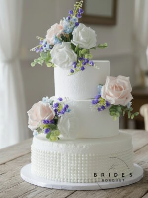 Cake Flower Set – Bluebell Cake Topper & 2 Side Sprays – 3 Piece Set – Roses With Bluebells