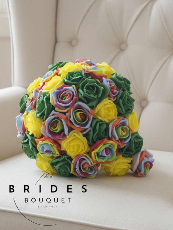 This artificial teardrop wedding bouquet is handmade to order in a beautiful mix of up to three rose colours of your choice. With over 60 shades available, you can create a unique bridal bouquet that compliments your wedding colours.