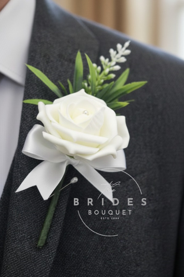 Faux Flower Wedding Buttonholes – Rose & Astilbe
