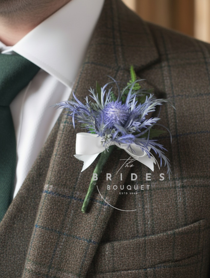 - 1 x Artificial blue thistle wedding buttonhole