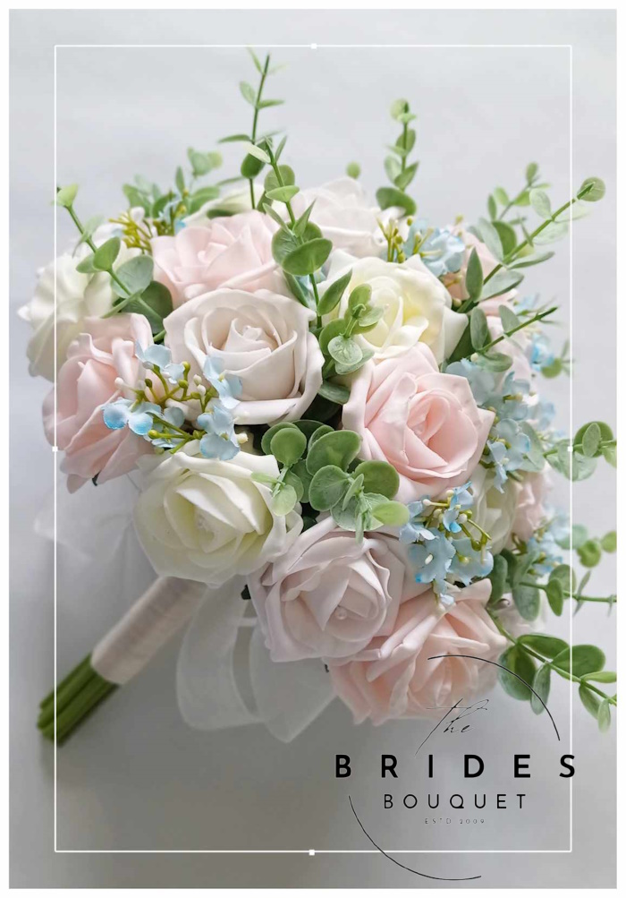 Artificial Wedding Bouquets – Roses, Eucalyptus & Forget Me Nots – Pick Your Own Colours
