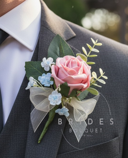 .Any Colour Rose & Forget Me Not Wedding Buttonholes