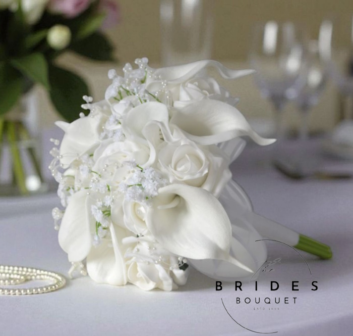 Bridal Bouquets of Calla Lily, Roses & Gypsophila – Artificial Wedding Flowers
