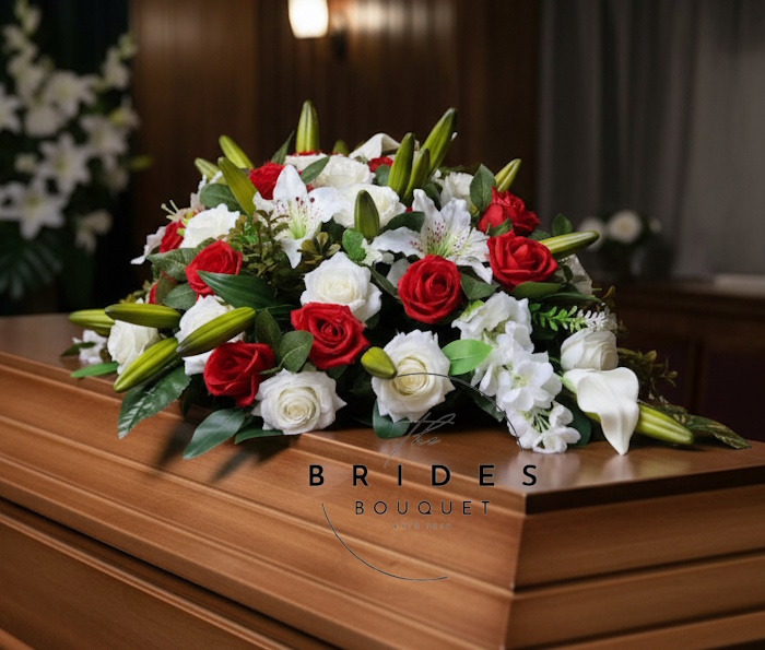 Casket Spray of Artificial Flowers – Large Funeral Arrangement (Approx. 75cm)