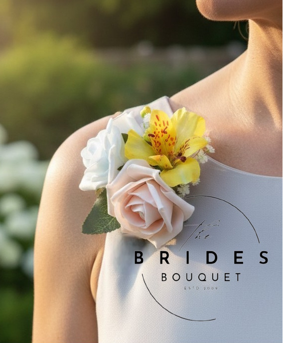 Artificial Rose & Alstromeria Wedding Corsage – Choose Rose & Alstroemeria Colours