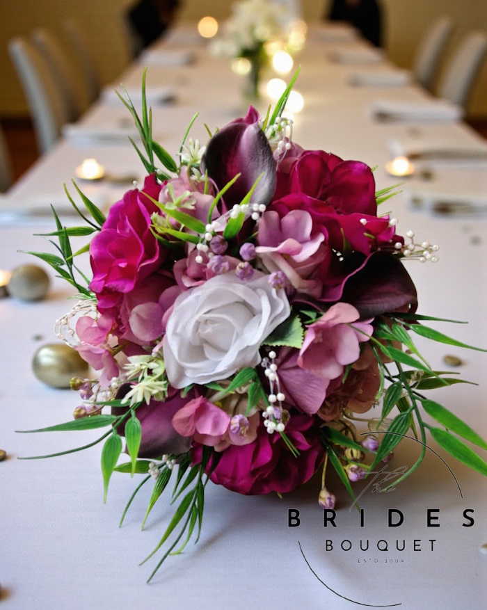 Jewelled Tone Silk Bridal Bouquet – Magenta, Mauve & White – Ready To Ship