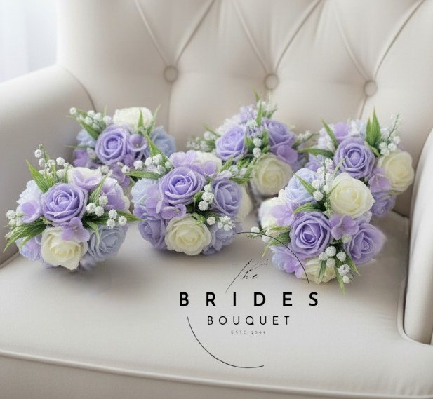 Beautiful rose and lily of the valley wedding bouquets, the ideal size for your younger bridesmaids and flower girls. These pretty posy style bouquets are handmade to order, you get to choose the flower colours and ribbon shades that match your wedding theme – we have SO many colours available!