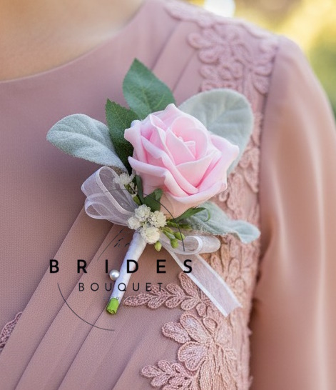Wedding Guest Buttonholes – Artificial Rose, Lambs Ear & Gyp – Natural Look in Any Colours