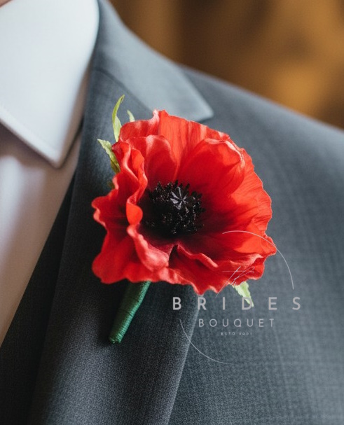 Lovely artificial red poppy buttonholes, perfect for the special guests on your wedding day, these are large flowers (approx 12cm diameter)