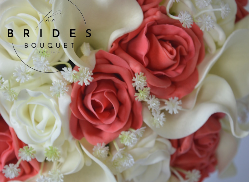 Brides Posy Bouquet – Artificial Roses, Calla Lily & Baby Breath – Choose Your Own Colours