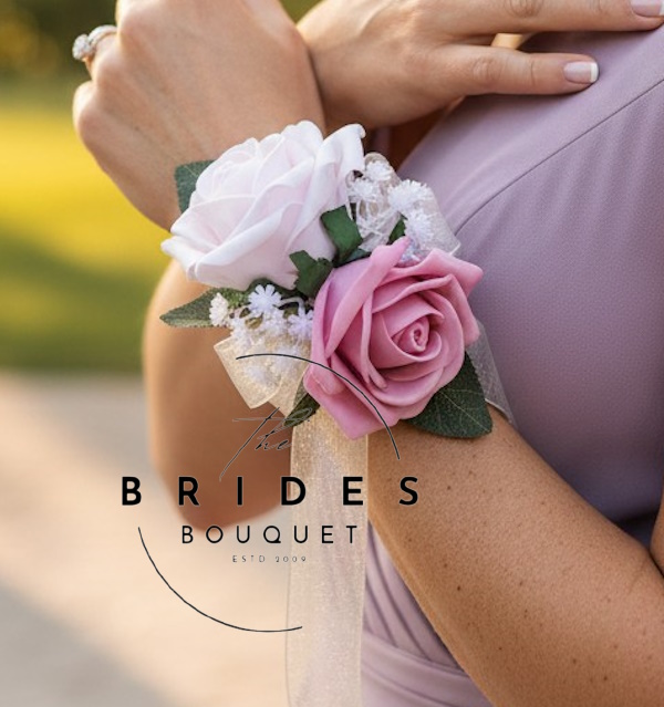 These pretty wrist corsages can be created in any combination of up to 2 different rose colours.