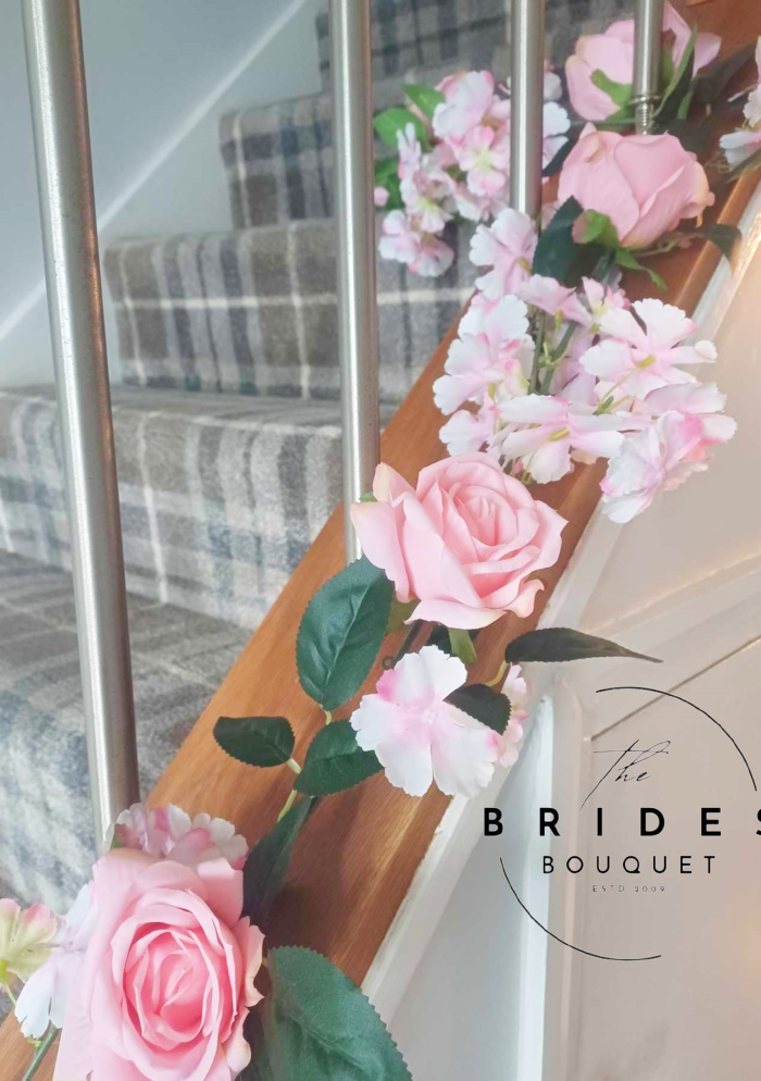 Pretty silk rose & hydrangea garlands are available to order in either pink or ivory flower shades. Perfect option for decorating your wedding venue or event space. Add to mirrors, pin to tables, staircases, arches etc Fake flower garlands are a simple and quick way to add colour and flowers to your wedding or home