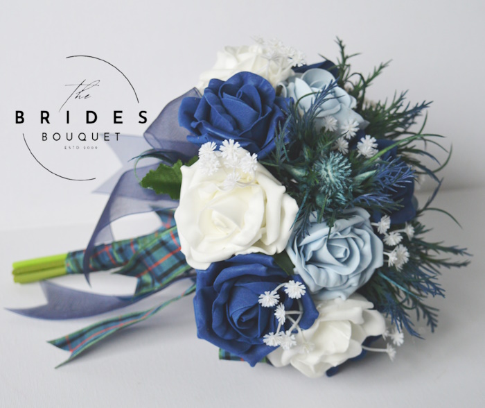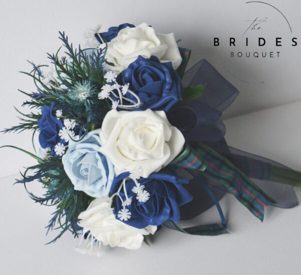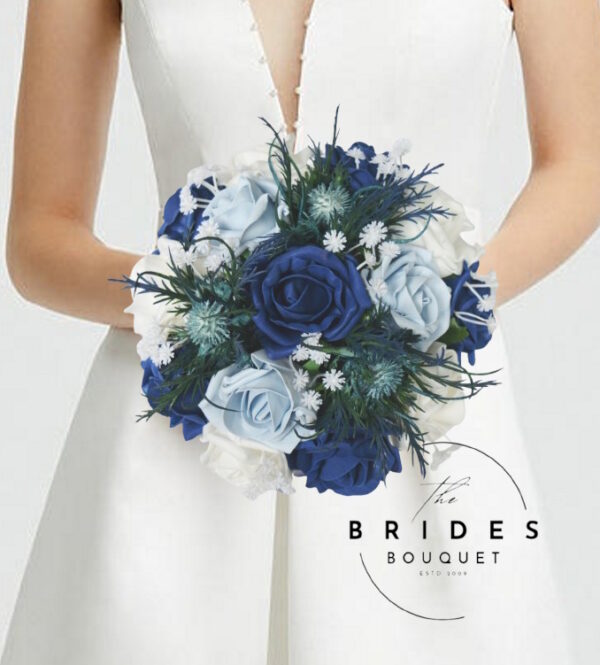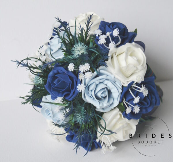 Artificial Thistle & Rose Wedding Bouquets – Blue Thistles