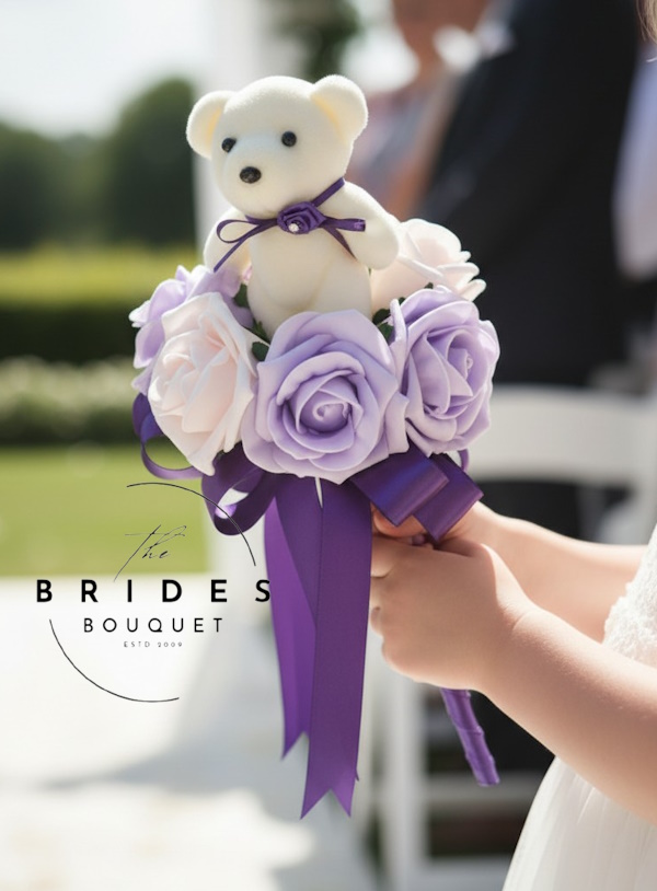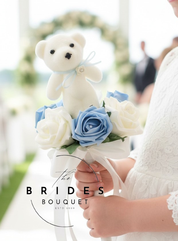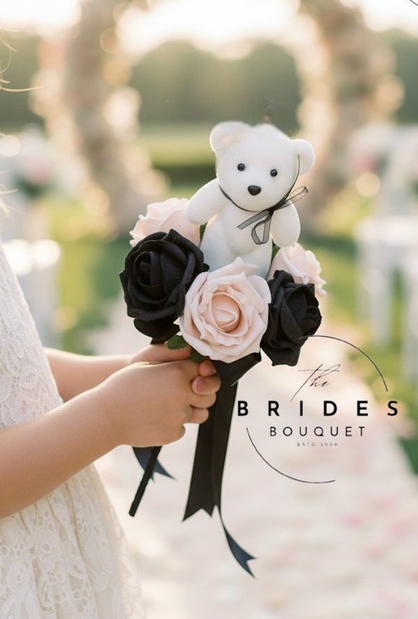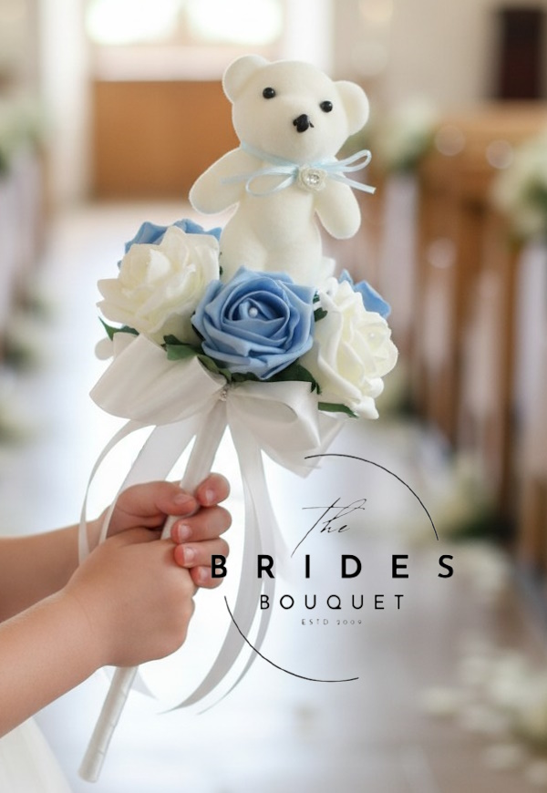 Looking for something a little different for your younger bridesmaids or flower girls? These bridesmaid wands feature a sweet ivory teddy bear (approx. 11cm tall) paired with faux roses in your chosen colours. Handmade to order, they’re a lovely alternative to a traditional flower girl posy and can be personalised to match your wedding theme.