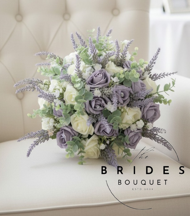 Artificial Heather & Rose Wedding Bouquet with Matching Grooms Buttonhole – Bridal Bouquet & Corsage – Any Colours