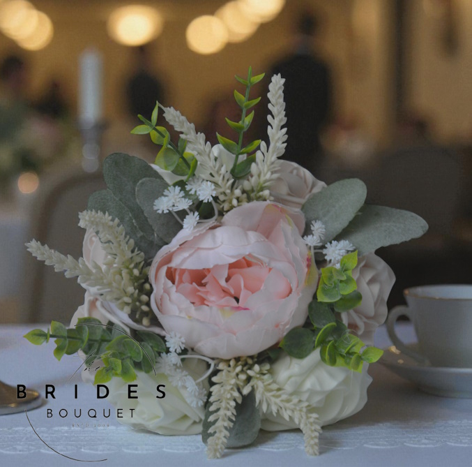 Natural Look Artificial Wedding Bouquets – Silk Peony, Heather, Artificial Roses & Gypsophila